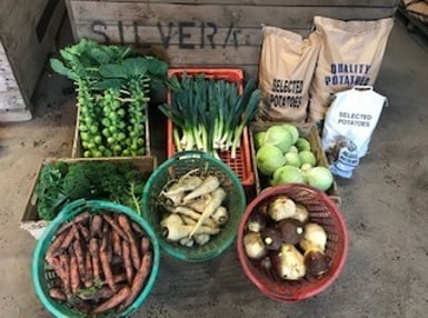 Our home grown vegetables are cut/dug fresh from our fields each day. Our potatoes are harvested in October and kept in our cold store to keep them 'just right', and to stop them from rotting in the ground over winter.